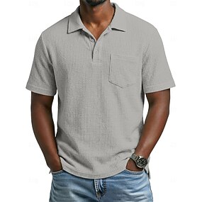 Bărbați Cămașă de golf Tricou polo din tricot Waffle Casual Afaceri Răsfrânt Clasic Manșon scurt Modă Modern Culoare solidă Simplu Buzunar Nasturi Vară Primăvară Fit regulat Negru Alb Bleumarin Mov