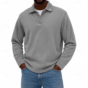 Bărbați Polo Cămasă Corduroy Vacanță Stradă Quarter Zip Manșon Lung Modă De Bază Simplu Primăvară Toamnă Fit adaptat Albastru piscină Roșu Vin Alb Mov Deschis Trifoi Kaki Polo