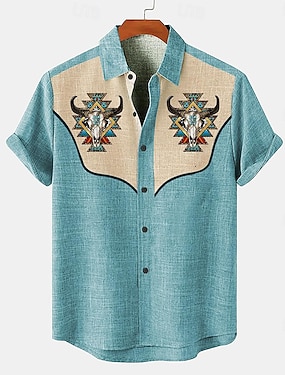 Bărbați Cămașă cămașă de in cămăși retro Cămașă de epocă Cămașă etnică occidental Muncă Casual Albastru piscină Trifoi Kaki Manșon scurt Răsfrânt Vară Primăvară Îmbrăcăminte
