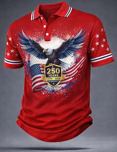 4 iulie 2026, a 250-a aniversare Bărbați Drapelul SUA american Tricouri polo Manșon scurt Tricouri de polo Cămăși cu guler Casual Haine de strada Îmbrăcăminte Atletică Nasturi Material Plasă care