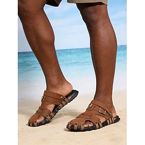 Sandale de plajă maro pentru bărbați, din piele ecologică, respirabile și elegante, perfecte pentru vacanțe la plajă și activități în aer liber