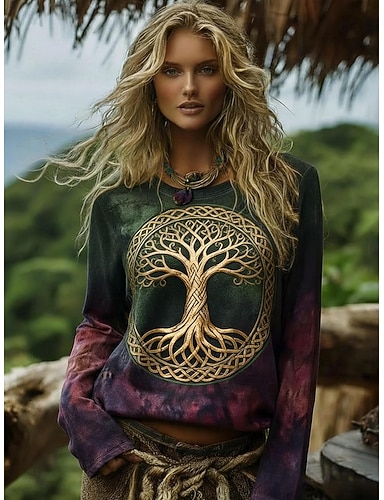 Pentru femei Cămașă Boho Tricou Imprimeu Grafic Boemia Epocă Casual Manșon Lung Stil Nautic Topuri obișnuite Zilnic Sfârșit de săptămână Îmbrăcăminte de vacanță Trifoi Vară Primăvară Toamnă