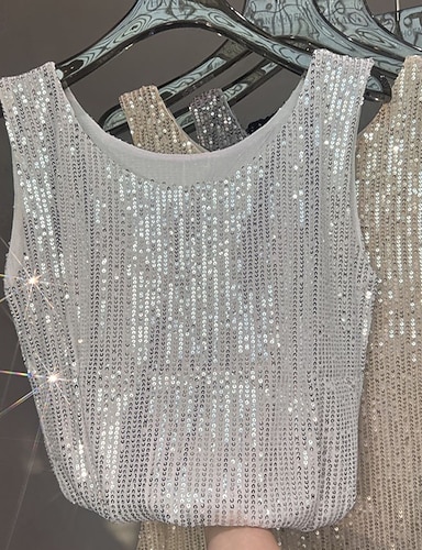 Pentru femei Bluză Topuri cu paiete Camisole Tank Top Paiete Strălucire Simplu Elegant Metalic Stilat Fără manșon Stil Nautic Topuri obișnuite Zilnic Concediu Ieșire Negru Alb Roșu Vin Vară Primăvar