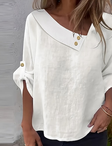 Pentru femei Cămăși Bumbac In Bluză In din bumbac artificial Peteci Nasturi Simplu Elegant Epocă Stilat Manșon Lung Asimetric Topuri obișnuite Zilnic Concediu Ieșire Albastru piscină Negru Alb Verde