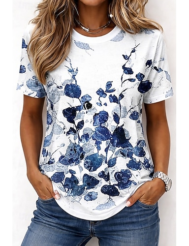 Pentru femei Tricou Imprimeu Floral Grafic Plante Stilat Clasic Casual Manșon scurt Stil Nautic Rotund Topuri obișnuite Casual Zilnic Alb / Albastru Roz Îmbujorat Trifoi Vară Primăvară Toamnă
