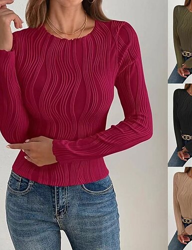 Pentru femei Tricou Tricouri Culoare solidă Elegant Stilat Casual Manșon Lung În U Topuri obișnuite Zilnic Ieșire Maroniu Negru Alb Roșu-aprins Roz trandafiriu Vară Primăvară