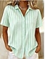 Pentru femei Bluză Imprimeu Grafic Dungi Epocă Stilat Modern Manșon scurt Guler de stand Topuri obișnuite Casual Zilnic Albastru piscină Roșu-aprins Trifoi Vară Primăvară