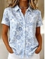 Pentru femei Cămașă Grafic Geometric Dungi Epocă Tropical Stilat Manșon scurt Guler Cămașă Topuri obișnuite Casual Zilnic Albastru piscină Trifoi Vară Primăvară