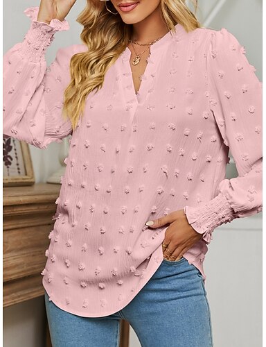 Pentru femei Tunică Bluză Bufantă Culoare solidă Stilat Modern Manșon Lung Mâneci Bufante În V Topuri obișnuite Zilnic Muncă Roz Îmbujorat Mov Trifoi Albastru Deschis Primăvară Toamnă
