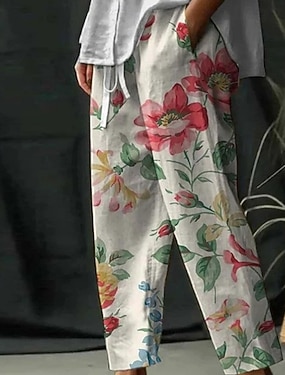 Pentru femei In din bumbac artificial Pantaloni Pantaloni de vară Modă Șic Stradă Lungime totală Natural Floare Imprimare Confortabil Exterior Comfortabil Purtare Zilnică Sfârșit de săptămână Roșu