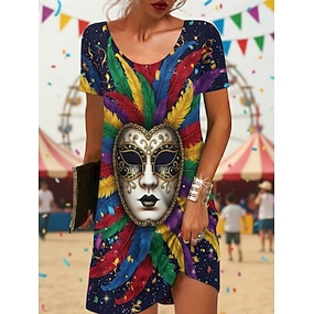 Carnaval Mardi Gras Pentru femei Tricou Eliminat Imprimeu Grafic Abstract Epocă Stilat Clasic Manșon Lung În V Topuri obișnuite Zilnic Negru Trifoi Primăvară Toamnă