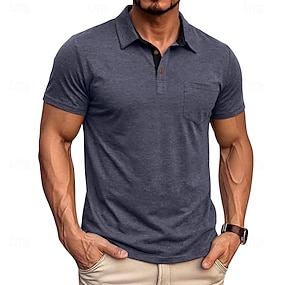 Bărbați Polo Tricouri polo Casual Stradă Rever Manșon scurt De Bază Modern Simplu Buzunar Nasturi Vară Primăvară Fit regulat Negru Bleumarin Trifoi Kaki Gri Albastru Deschis Polo