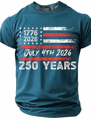 Tricou grafic bărbătesc cu steagul SUA 1776-2026, 4 iulie 2026, guler rotund, model patriotic, aniversare 250 de ani, cadou de sărbătoare, îmbrăcăminte de designer