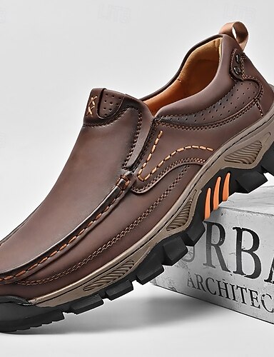 Pantofi sport bărbătești maro din piele ecologică, cu vârf simplu și talpă decorativă, mocasini formali clasici pentru bărbați de afaceri și bărbați maturi, ideali pentru birou, nunți