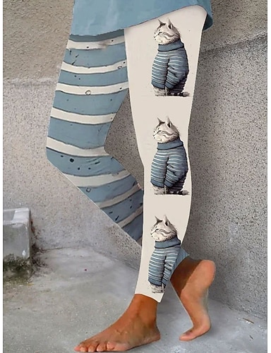 Pentru femei Jambiere Vacanță Epocă Modă Lungime totală Talie Înaltă Grafic Pisica Imprimare Termic cald Απαλό Respirabil Strech Zilnic În aer liber Vacanță Albastru piscină Roz Îmbujorat Mov Trifoi