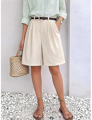 Pentru femei Bermude chinez Pantaloni Scurți Vacanță Șic Stradă Casual Scurt Talie medie Simplu Cordon Buzunar Confortabil Strech Zilnic În aer liber Vacanță Caisă Negru Alb Albastru Marin Închis