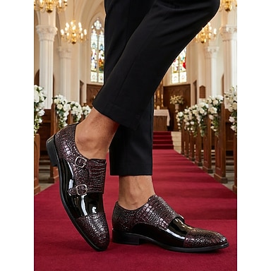 pantofi oxford din piele maro cu model crocodil pentru bărbați – pantofi eleganti de bal și banchet cu cataramă laterală