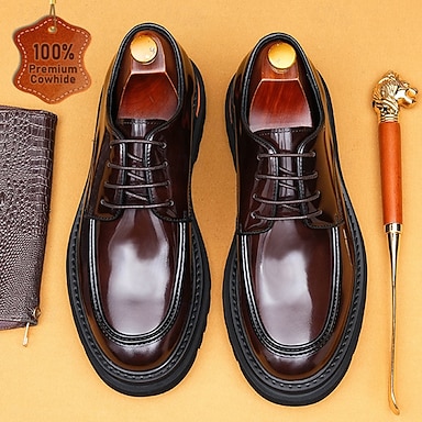 Pantofi eleganți Oxford pentru bărbați, din piele naturală, cu vârful acoperit - pantofi de afaceri clasici, cu șireturi, din piele de vacă, pentru birou, nunți și ținute profesionale