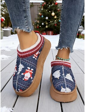 Papuci de damă colorați cu imprimeu leopard și căptușeală din blană – papuci comozi cu platformă pentru ieșiri casual, iarnă, Crăciun și zile relaxante