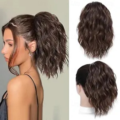extensie coadă de cal - extensii de păr coadă de cal cu șnur de 30 cm pentru femei, extensii de păr sintetice, buclate, ondulate, pentru coadă de cal falsă, pentru uz zilnic la petreceri (maro mixt)