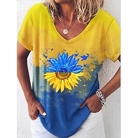Pentru femei Tricou Bloc de Culoare Imprimeu Floral Grafic Epocă Stilat Clasic Manșon scurt În V Topuri obișnuite Zilnic Albastru piscină Galben Vară Primăvară