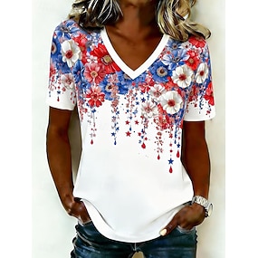 Ziua Independenței Tricou Patriotic pentru Femei Imprimare Grafic Steag Plante Vintage Elegant Clasic Maneci Scurte Gât în V Regulat Topuri Zilnic Galben Roz Roșu Portocaliu Vară Primăvară