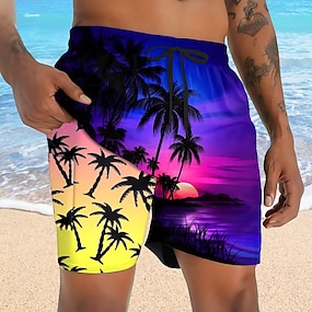 Bărbați Flamingo Copac de cocos Plante tropicale Pantaloni scurți căptușiți Pantaloni scurți de baie 2 în 1 Pantaloni Scurți de Înot Talie medie Hawaiană Concediu Buzunare laterale Cu căptușeală de