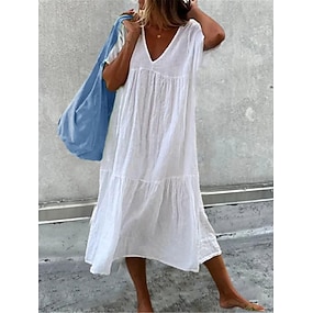 Pentru femei Rochii Midi Rochie de schimb Rochie de Vară Rochie albă Rochii de in bumbac Casual Zilnic Vacanță Potrivire Largă Simplu Manșon scurt În V Albastru piscină Negru Alb Roz Îmbujorat Var