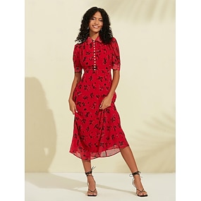 Rochie midi pentru femei, maro, imprimeu floral, cămașă din raion, mâneci raglan, talie elastică reglabilă, croială confortabilă, casual, zi de zi, primăvară, vară, toamnă