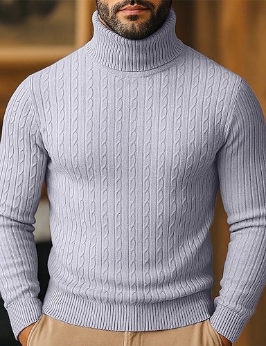 Bărbați Pulover cu gât rotic Pulover pulover Striat Tricotat Topuri obișnuite Tricotat Striat Simplu Gât Înalt De Bază Păstrați-vă cald Casual Purtare Zilnică Îmbrăcăminte Iarnă Albastru piscină Negru