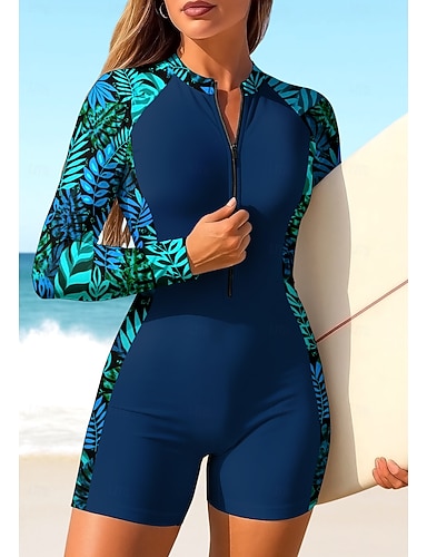 Pentru femei Regulat Bariere Iritatie Costum de baie Boyleg Tropical Inchide fermuarul Pernițe Detașabile Fermoar Față Protecție UV la soare UPF50+ Ultra Ușor (UL) Manșon Lung Costume de Baie Bariere
