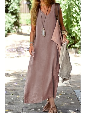 Pentru femei Rochie Lunga Rochie Maxi Rochie Maxi In din bumbac artificial Rochie de schimb Rochie de Vară Rochie casual Modă De Bază Modern Zilnic În aer liber Vacanță Fit regulat Simplu Fără manșon