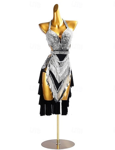 Dans Latin Rochie Piatră Semiprețioasă Franjuri Pentru femei Petrecere Antrenament Performanță Fără manșon Spandex Nailon