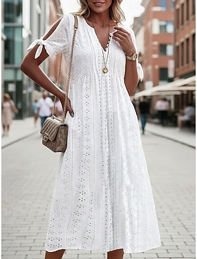 Pentru femei Rochii Midi Rochie albă Rochie cu ochi Elegant Modă Modern Casual Zilnic În aer liber Potrivire Largă Simplu Manșon scurt În V Albastru piscină Negru Alb Verde Deschis Vară Primăvară