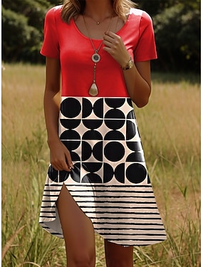 Pentru femei Rochie Mini Rochii Tricou Rochie A line Rochie de vară Casual Zilnic Fit regulat Grafic Geometric Manșon scurt Crewneck Roșu-aprins Vară Primăvară