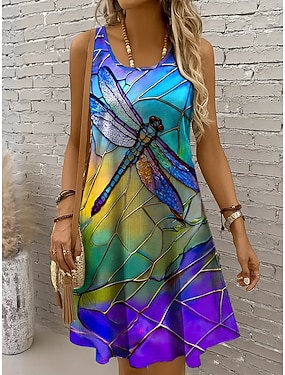 Pentru femei Rochie Mini Rochie A line Rochie Tip Maieu Elegant Stilat Casual Zilnic Fit regulat Floral Grafic Fără manșon În U Verde Deschis Roșu-aprins Albastru piscină Mov Deschis Vară Primăvară