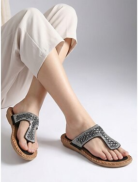 sandale de damă cu curea în T, împodobite cu strasuri – sandale plate elegante pentru plajă de vară, ținute de nuntă și petrecere
