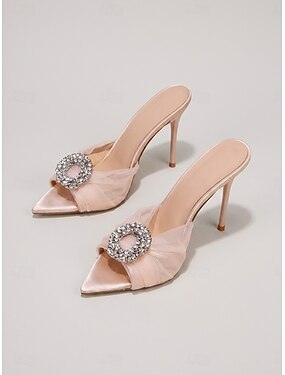 Sandale elegante cu toc roz și strasuri pentru femei – sandale fără toc, cu vârful deschis, pentru invitații la nuntă din grădină &petreceri de vară