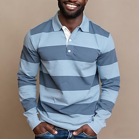 Bărbați Dungi Polo de rugby Manșon Lung Tricouri de polo Cămăși cu guler Îmbrăcăminte sportivă Casual Școală În aer liber Birou Purtare Zilnică Nasturi Primăvară Toamnă Iarnă Alb Albastru piscină Maro