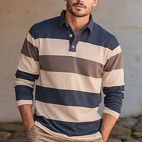Bărbați Dungi Polo de rugby Manșon Lung Tricouri de polo Cămăși cu guler Casual În aer liber Îmbrăcăminte Atletică Imprimare 3D Primăvară Toamnă Iarnă Negru Maro Albastru Închis