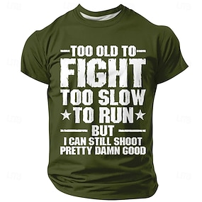 Tricou bărbătesc amuzant cu armă, verde militar, cu mesajul „prea bătrân ca să lupți, prea lent ca să alergi”, grafică, încă tragi, cadou tactic pentru veteran, îmbrăcăminte 2a, imprimeu distressed,