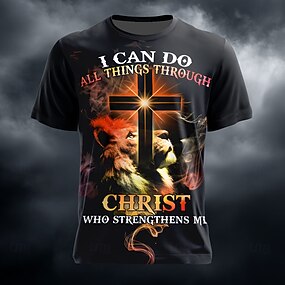 Tricou Bărbați Biblie Iuda Leu Cruce Strălucitoare Pot Face Toate Lucrurile Prin Hristos Care Mă Întărește Verset Motivational Religios Printare 3D Întreaga Tricou Ajustat Biserică Duminică Casual