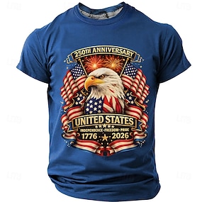 4 iulie 2026 Ziua Memoriei de 250 de ani Tricou pentru Bărbați imprimat 3D cu steagul SUA gât rotund și mânecă scurtă Stradă Zilnică