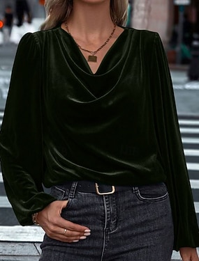 Pentru femei Tricou Tricou din catifea Culoare solidă Elegant Stilat Casual Manșon Lung Manșon de lanternă Glugă Gât Topuri obișnuite Zilnic Ieșire Roșu Vin Roz Prăfuit Bleumarin Verde Închis Maro