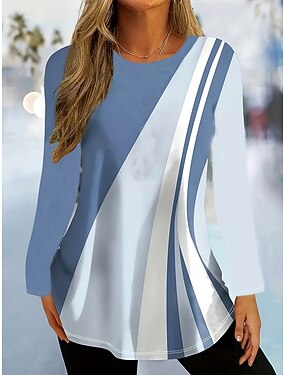 Tricou pentru femei cu guler rotund mânecă lungă tunică grafică geometrică Casual Topuri obișnuite zilnice imprimeu Albastru prăfuit Primăvară Toamnă