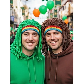 Pălărie bărbătească din poliester cu perucă artificială colorată, disponibilă în mai multe culori, perfectă pentru Ziua Sfântului Patrick, carnaval și ocazii festive