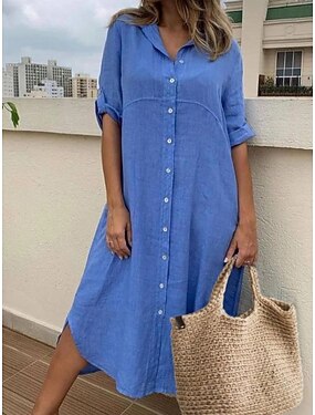 Pentru femei Rochie Maxi In din bumbac artificial Rochii Tip Cămașă Rochie casual Rochie de vara din bumbac Modă De Bază Modern Zilnic În aer liber Vacanță Potrivire Largă Simplu Manșon Jumate În V