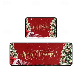 Set de 2 covorașe de bucătărie de Crăciun, covoare decorative festive pentru podea, intrare, bucătărie, uz interior