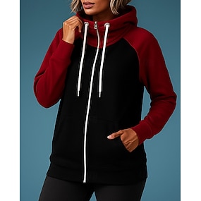 Crăciun Pentru femei Trening cu fermoar complet Jachetă cu glugă din fleece Hanorac casual Cu buzunare Manșon Lung Topuri Îmbrăcăminte Atletică Peteci Bumbac PU piele Αντιανεμικό Cald Exterior
