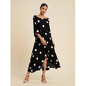 Pentru femei Rochie eleganta Rochii Midi Negru Lungime Manșon 3/4 Buline Tiv asimetric De pe umăr Primavara vara De Pe Umăr Elegant Romantic S M L